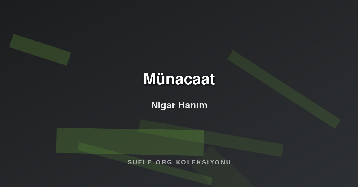 Derdinin dermanını Sen ver Niğâr-ı bî-kesin